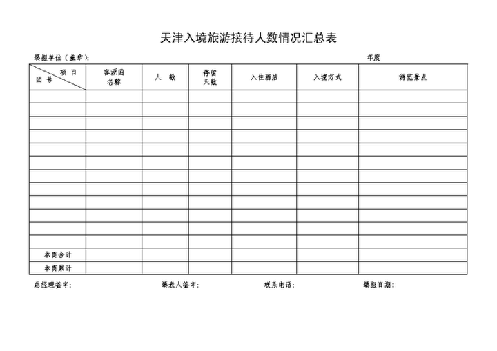 天津組織入境旅游獎勵人數情況統(tǒng)計表