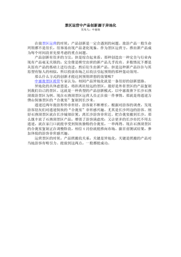 景區(qū)運(yùn)營(yíng)中產(chǎn)品創(chuàng)新源于異地化
