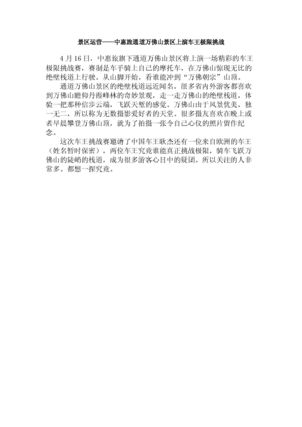 景區(qū)運營——中惠旅通道萬佛山景區(qū)上演車王極限挑戰(zhàn)