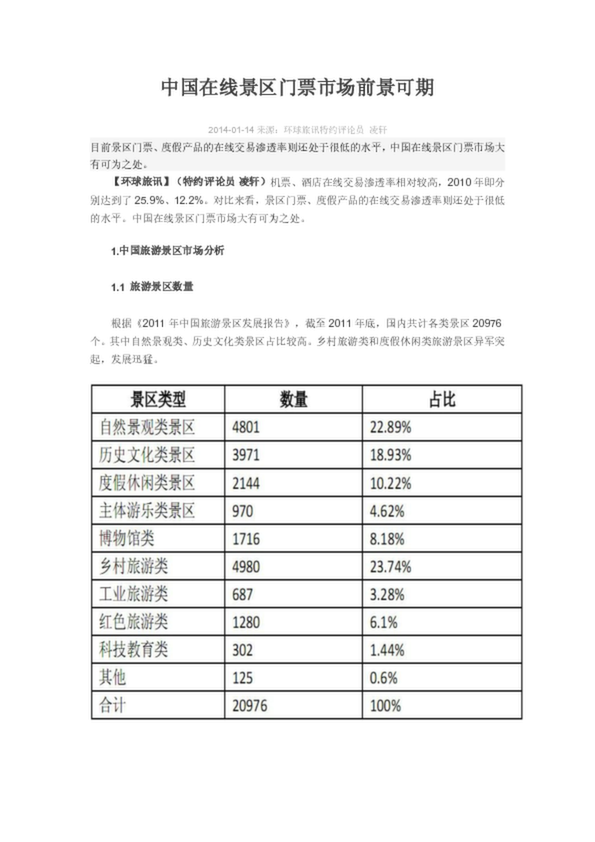 中國(guó)在線景區(qū)門票市場(chǎng)前景可期