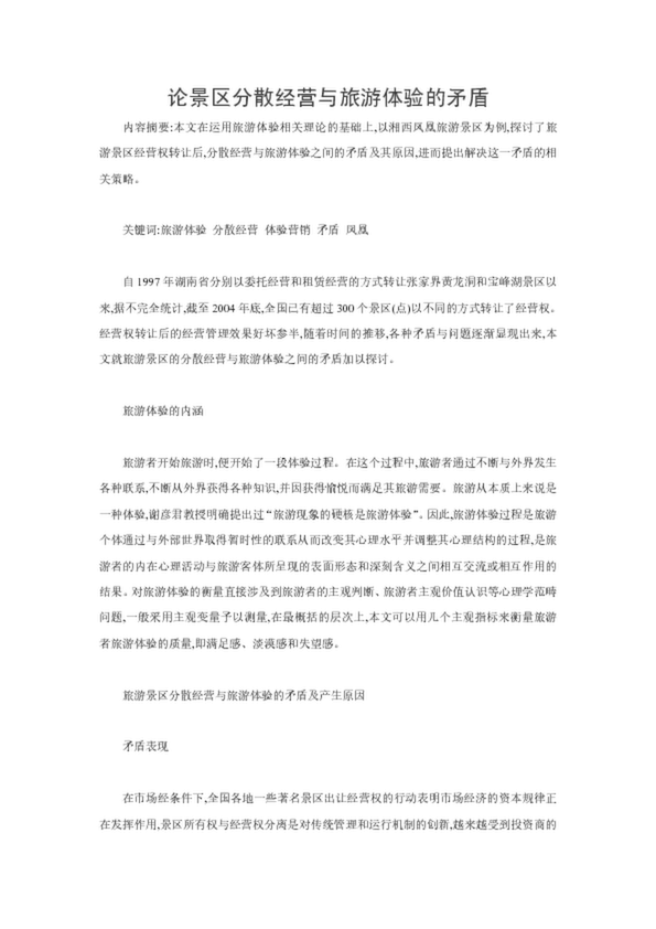 論景區(qū)分散經(jīng)營與旅游體驗的矛盾