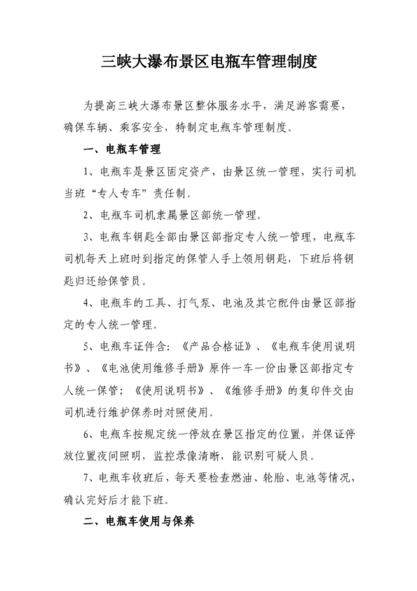 三峽大瀑布景區(qū)電瓶車管理制度