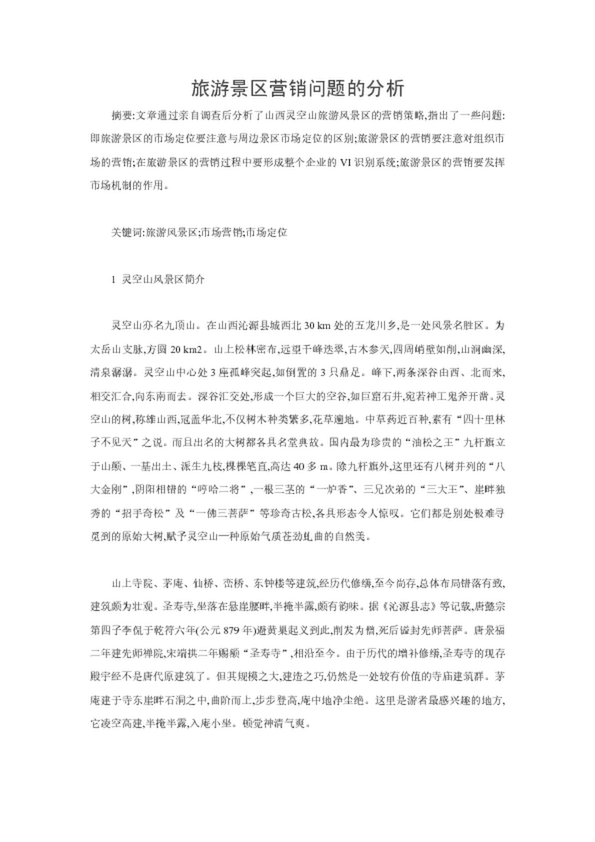 旅游景區(qū)營銷問題的分析