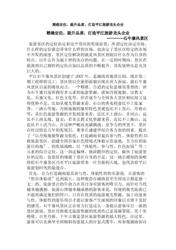精確定位,提升品質(zhì),打造平江旅游龍頭企業(yè)