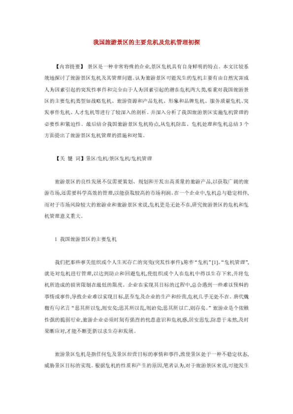 我國(guó)旅游景區(qū)的主要危機(jī)及危機(jī)管理初探