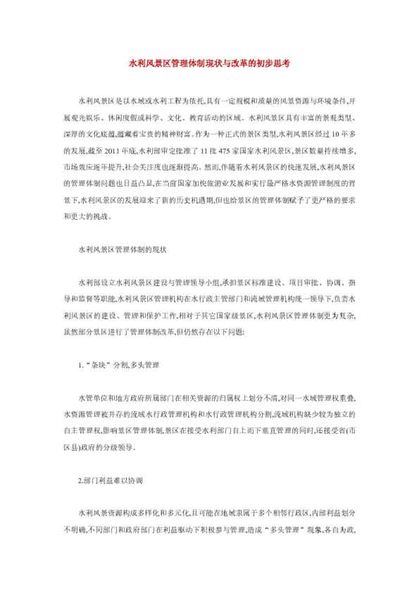 水利風(fēng)景區(qū)管理體制現(xiàn)狀與改革的初步思考