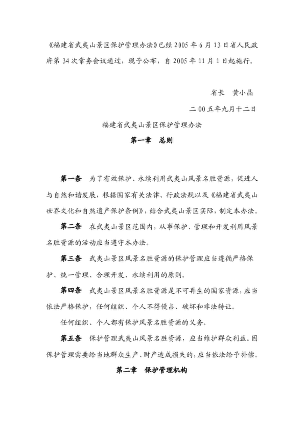 福建省武夷山景區(qū)保護(hù)管理辦法