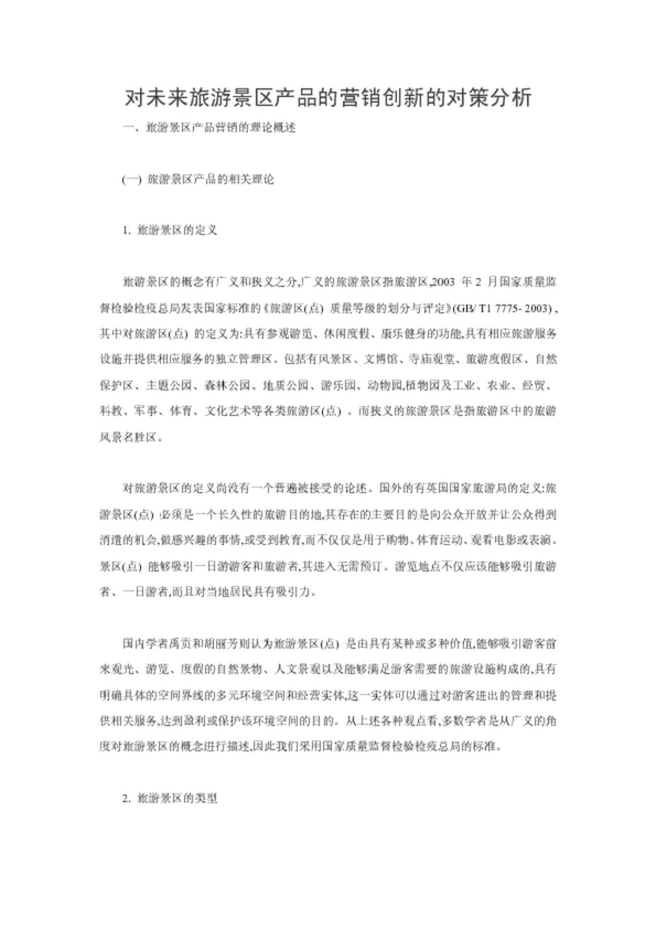 對未來旅游景區(qū)產(chǎn)品的營銷創(chuàng)新的對策分析