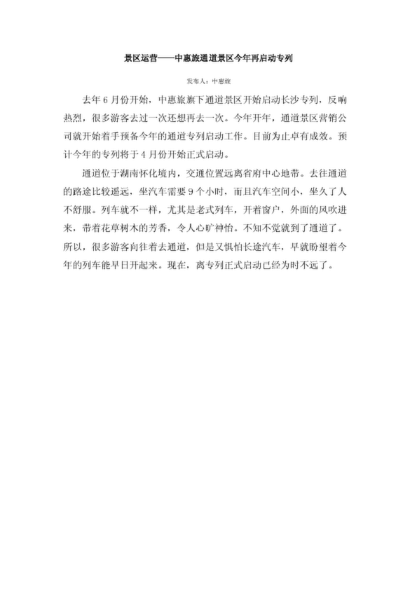 景區(qū)運營——中惠旅通道景區(qū)今年再啟動專列