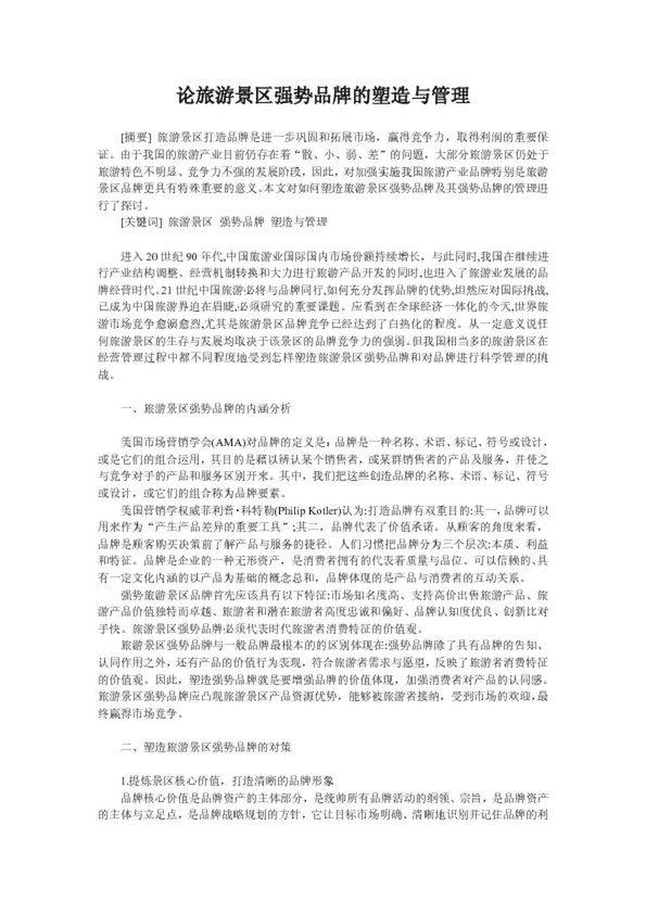 論旅游景區(qū)強勢品牌的塑造與管理