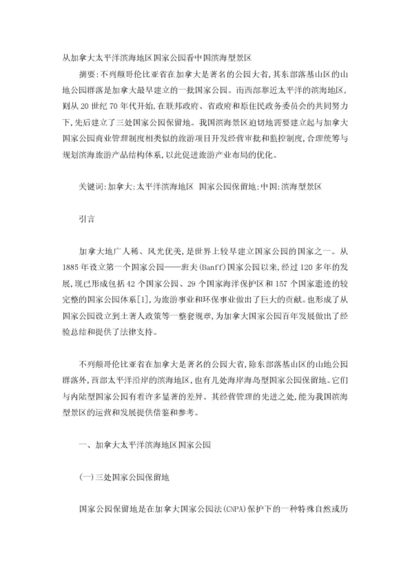 從加拿大太平洋濱海地區(qū)國家公園看中國濱海型景區(qū)