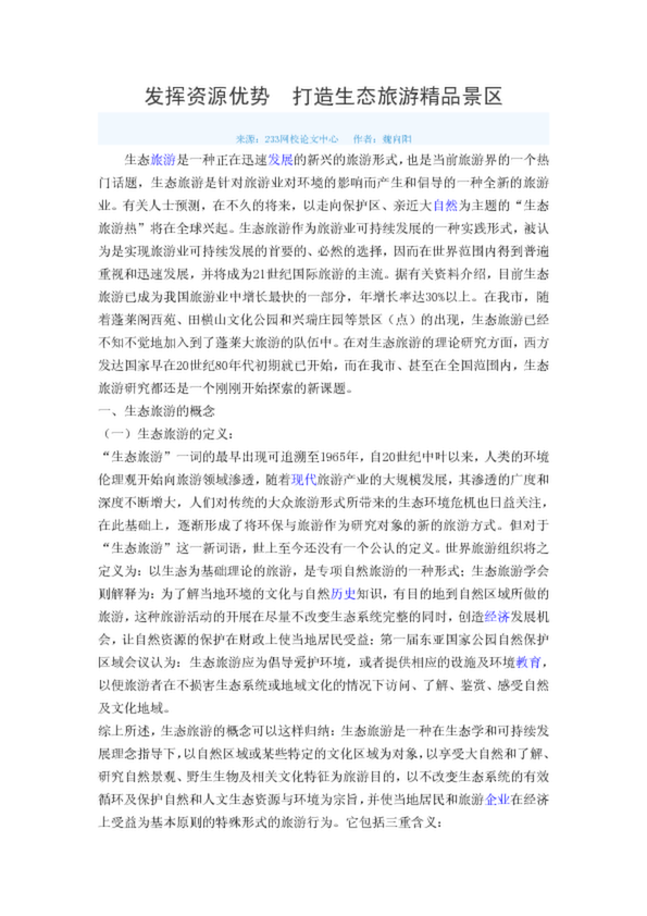 發(fā)揮資源優(yōu)勢 打造生態(tài)旅游精品景區(qū)