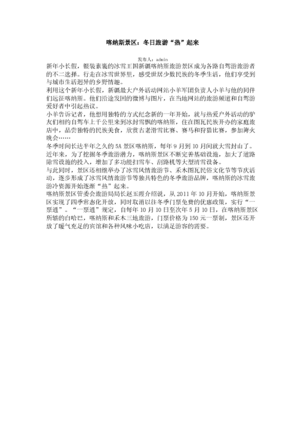 喀納斯景區(qū):冬日旅游“熱”起來