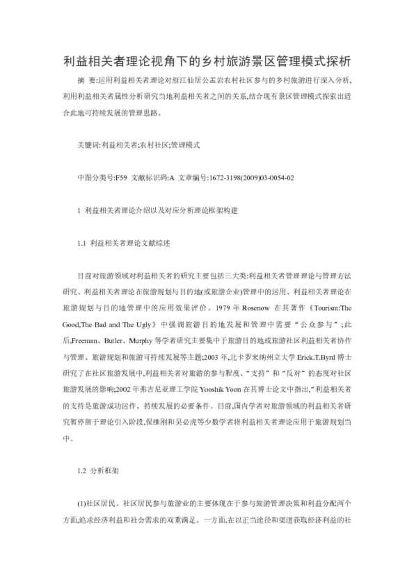 利益相關(guān)者理論視角下的鄉(xiāng)村旅游景區(qū)管理模式探析