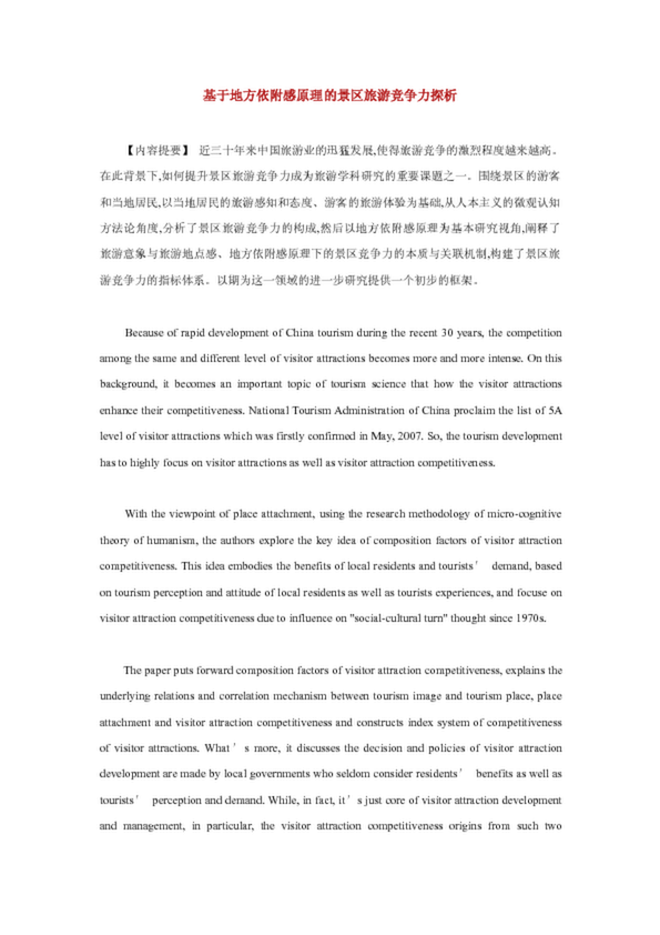 基于地方依附感原理的景區(qū)旅游競爭力探析