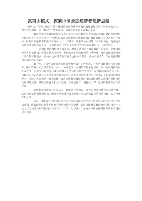 武夷山管理新模式