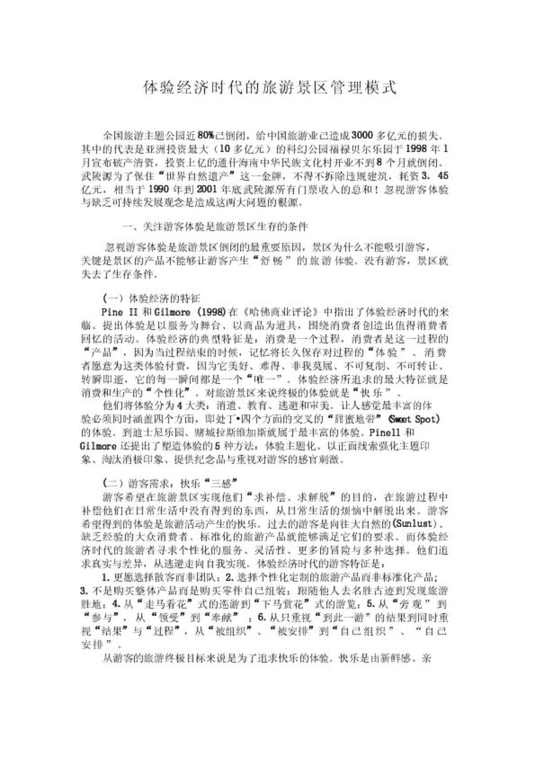 體驗(yàn)經(jīng)濟(jì)時(shí)代的旅游景區(qū)管理模式