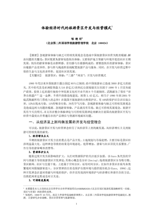 體驗(yàn)經(jīng)濟(jì)時(shí)代的旅游景區(qū)開發(fā)與經(jīng)營模式