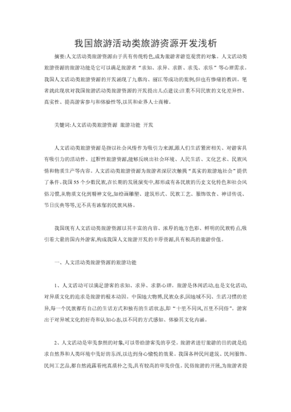 我國(guó)旅游活動(dòng)類旅游資源開發(fā)淺析