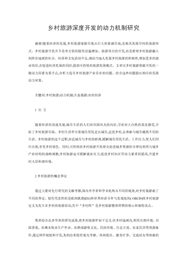 鄉(xiāng)村旅游深度開發(fā)的動(dòng)力機(jī)制研究