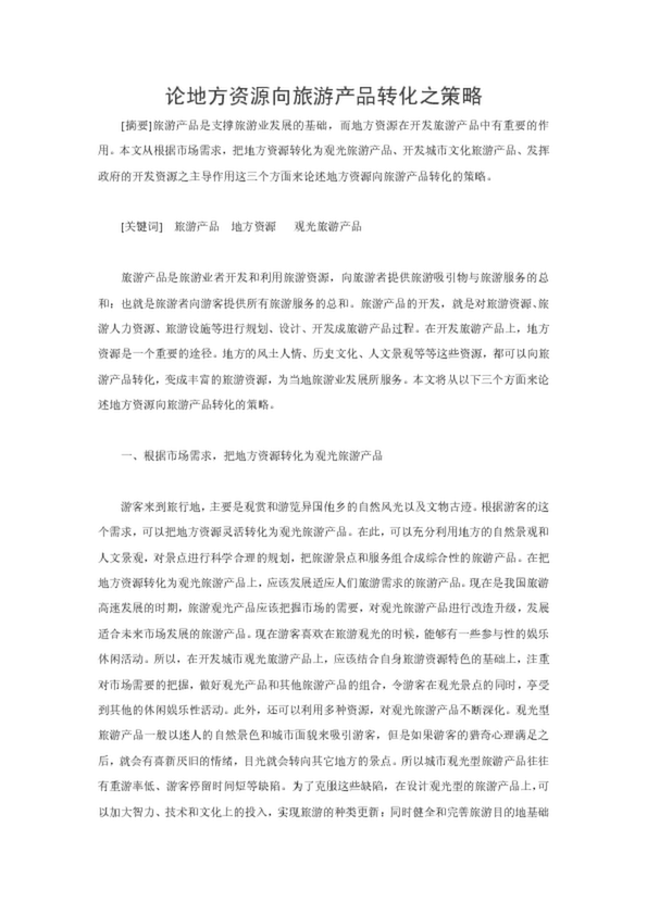 論地方資源向旅游產(chǎn)品轉(zhuǎn)化之策略(14.50KB)
