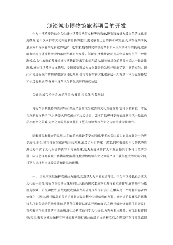 淺談城市博物館旅游項目的開發(fā)