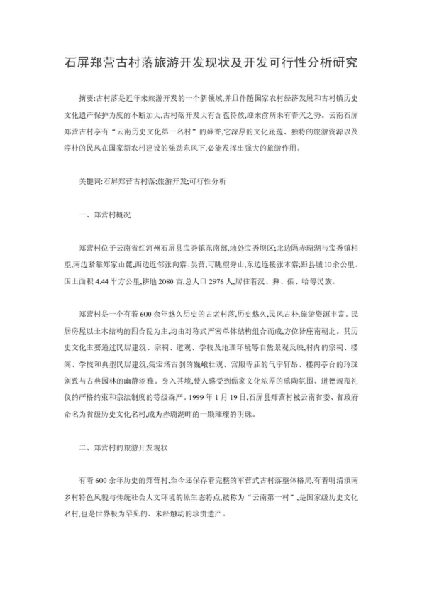 石屏鄭營古村落旅游開發(fā)現(xiàn)狀及開發(fā)可行性分析研究
