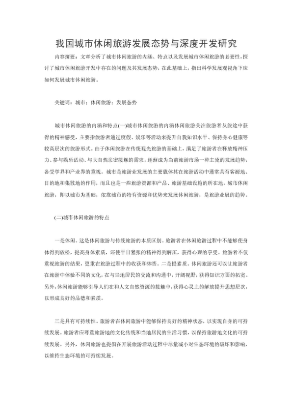 我國(guó)城市休閑旅游發(fā)展態(tài)勢(shì)與深度開(kāi)發(fā)研究