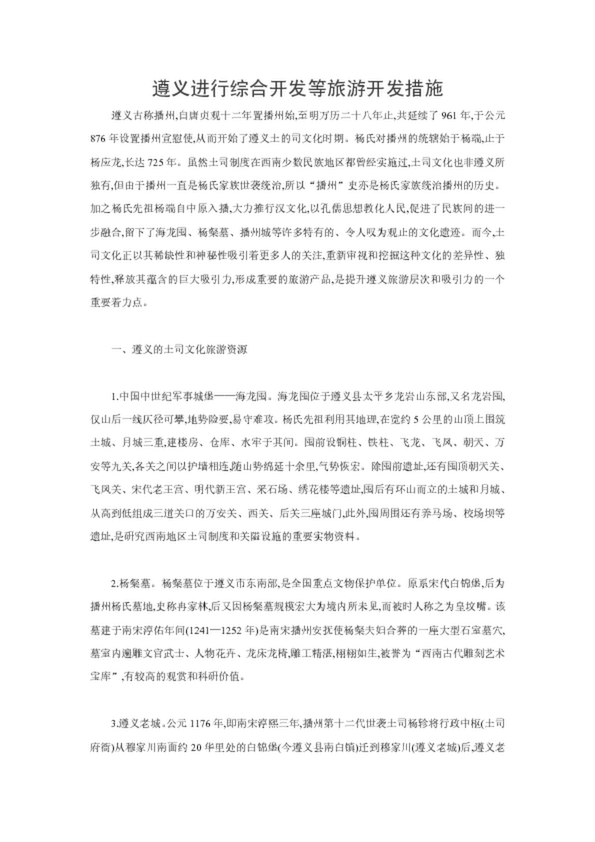 遵義進行綜合開發(fā)等旅游開發(fā)措施