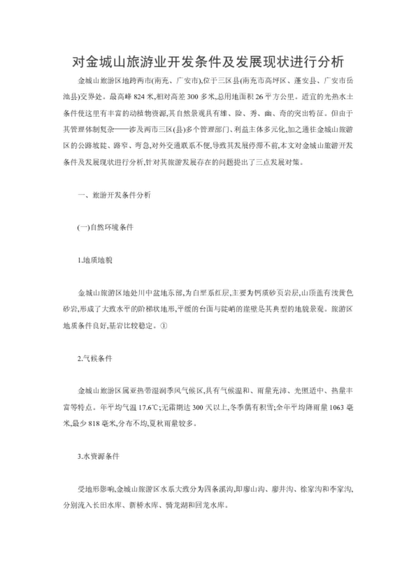 對金城山旅游業(yè)開發(fā)條件及發(fā)展現(xiàn)狀進(jìn)行分析