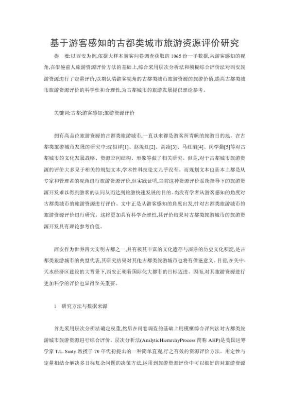 基于游客感知的古都類城市旅游資源評價研究