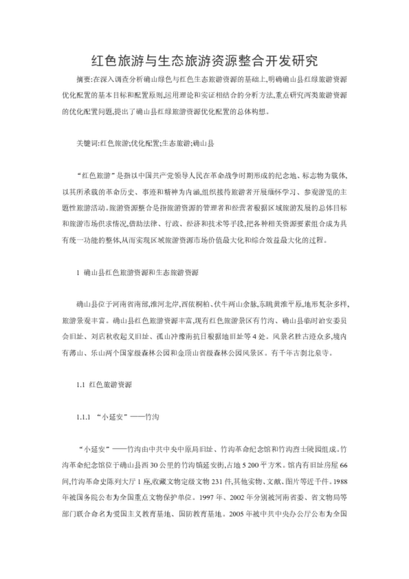 紅色旅游與生態(tài)旅游資源整合開發(fā)研究