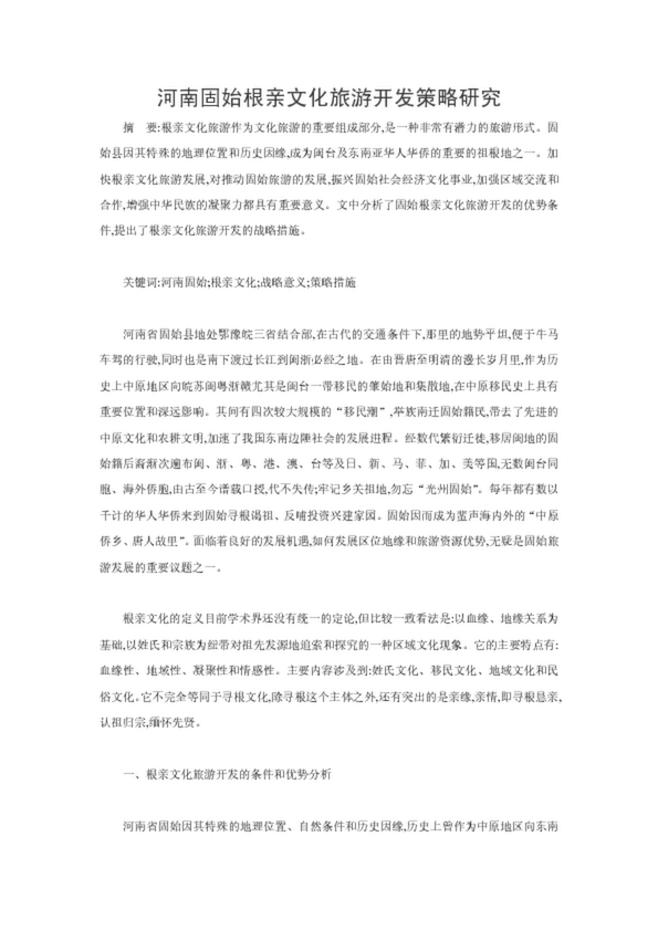 河南固始根親文化旅游開發(fā)策略研究