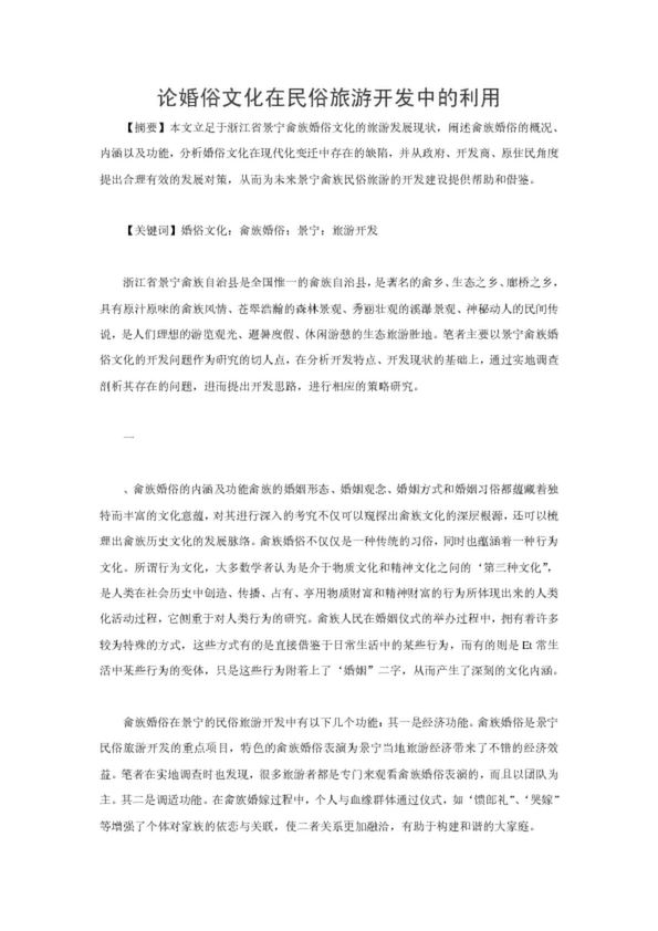 論婚俗文化在民俗旅游開發(fā)中的利用