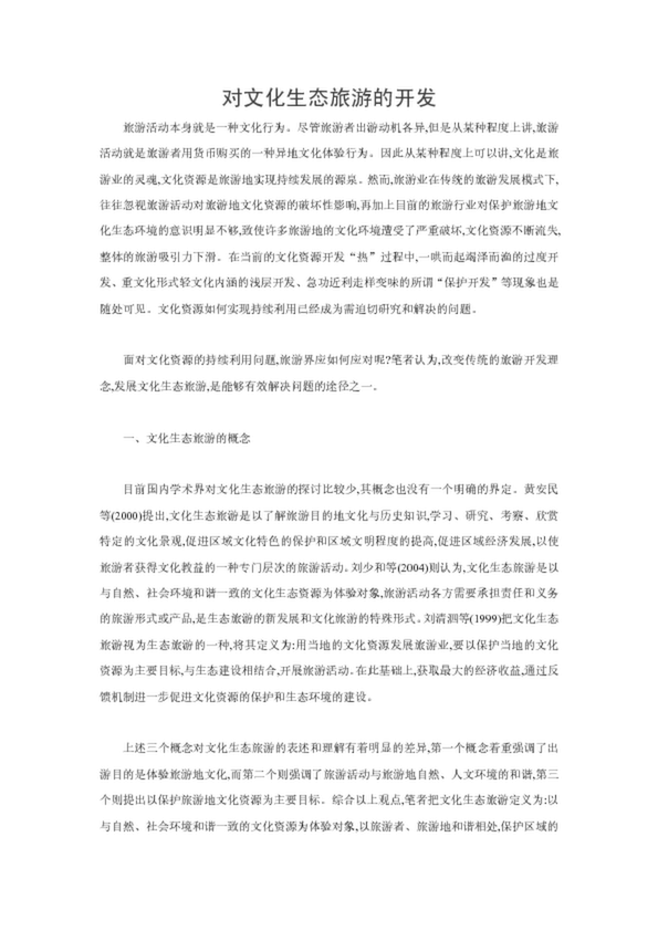 對(duì)文化生態(tài)旅游的開(kāi)發(fā)