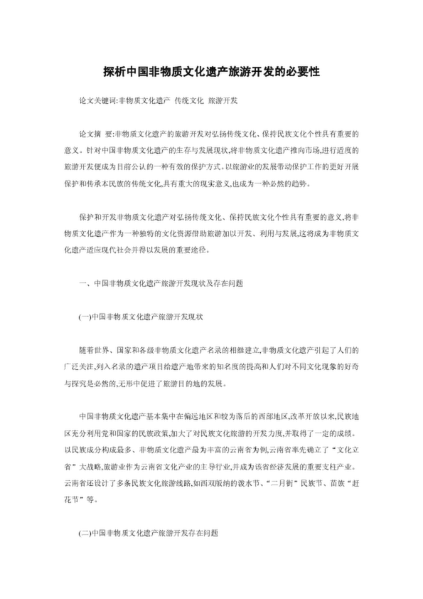 探析中國非物質(zhì)文化遺產(chǎn)旅游開發(fā)的必要性