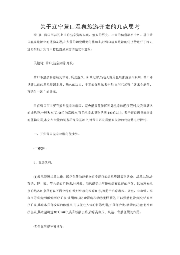 關(guān)于遼寧營口溫泉旅游開發(fā)的幾點(diǎn)思考