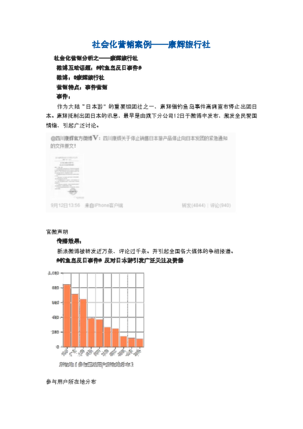 以康輝旅行社為例子, 講述社會化營銷,本文中康輝旅行社微博互動話題:#釣魚島反日事件#:事件營銷事件:作為大陸“日本...