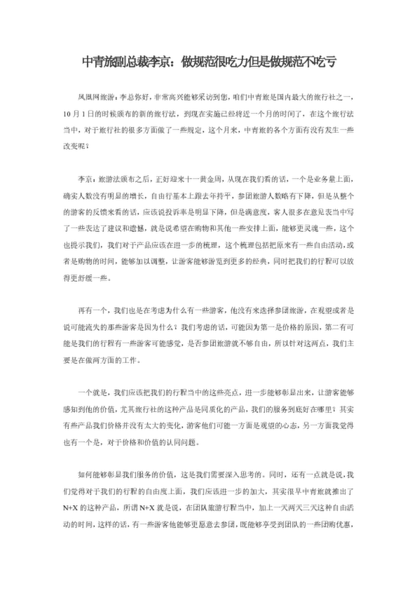 中青旅副總裁李京:做規(guī)范很吃力但是做規(guī)范不吃虧(23.50KB)