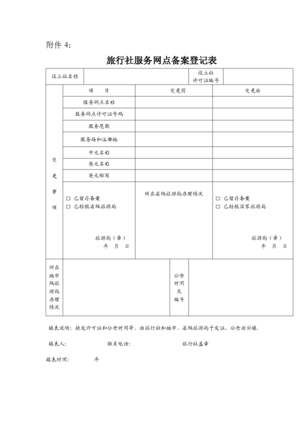 旅行社服務(wù)網(wǎng)點(diǎn)備案登記表