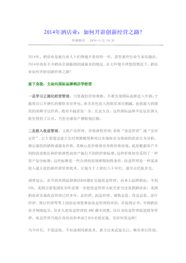 2014年酒店業(yè):如何開辟創(chuàng)新經(jīng)營(yíng)之路(18.50KB)