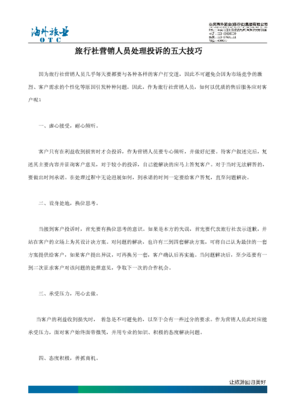 旅行社營銷人員處理投訴的五大技巧(0.17MB)