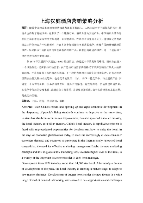 上海漢庭酒店?duì)I銷策略分析(81.50KB)