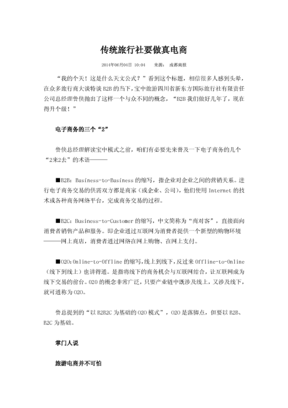 傳統(tǒng)旅行社把信息技術(shù)巧妙地運(yùn)用到自己的生產(chǎn)經(jīng)濟(jì)各個(gè)環(huán)節(jié),運(yùn)用好了就是優(yōu)秀的旅游電子商務(wù)。 目前,傳統(tǒng)旅游受到前所未有的沖擊,很多傳統(tǒng)旅游企業(yè)也開(kāi)始嘗試向旅游電子商務(wù)轉(zhuǎn)型,但這些企業(yè)對(duì)旅游電子商務(wù)了解甚少,再加...