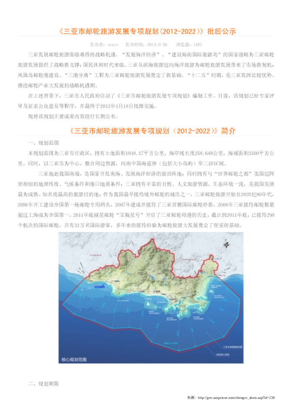 《三亞市郵輪旅游發(fā)展專項規(guī)劃(2012-2022)》批后公示