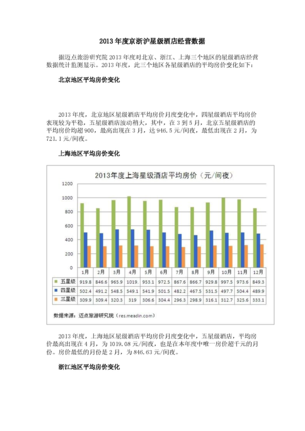 2013年度京浙滬星級酒店經(jīng)營數(shù)據(jù)