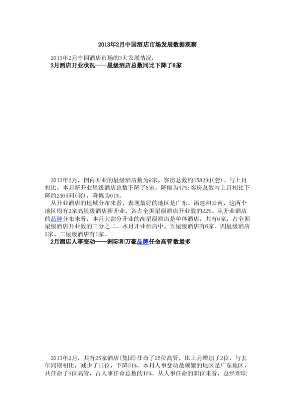 2013年2月中國酒店市場發(fā)展數(shù)據(jù)觀察