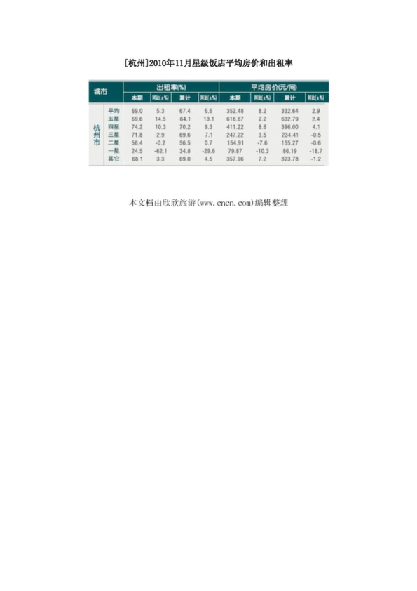 [杭州]2010年11月星級(jí)飯店平均房?jī)r(jià)和出租率