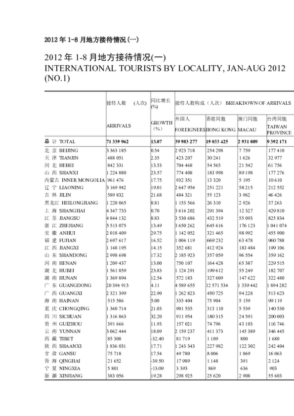 2012年1-8月地方接待情況(一)