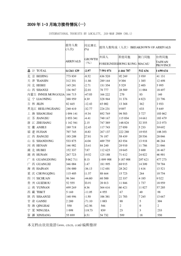 2009年1-3月地方接待情況(一)